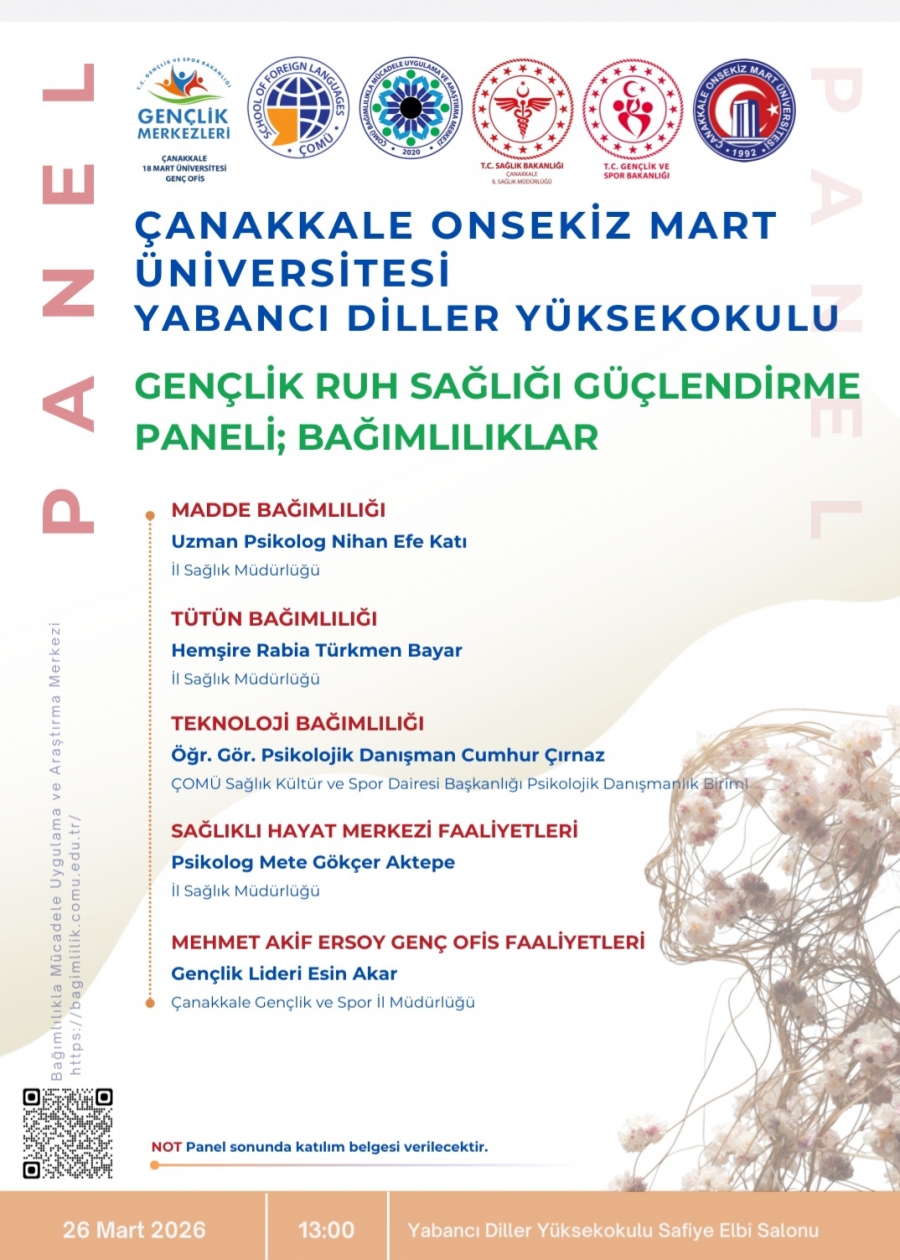 "Gençlik Ruh Sağlığı Güçlendirme; Bağımlılıklar" paneli düzenlenecektir.