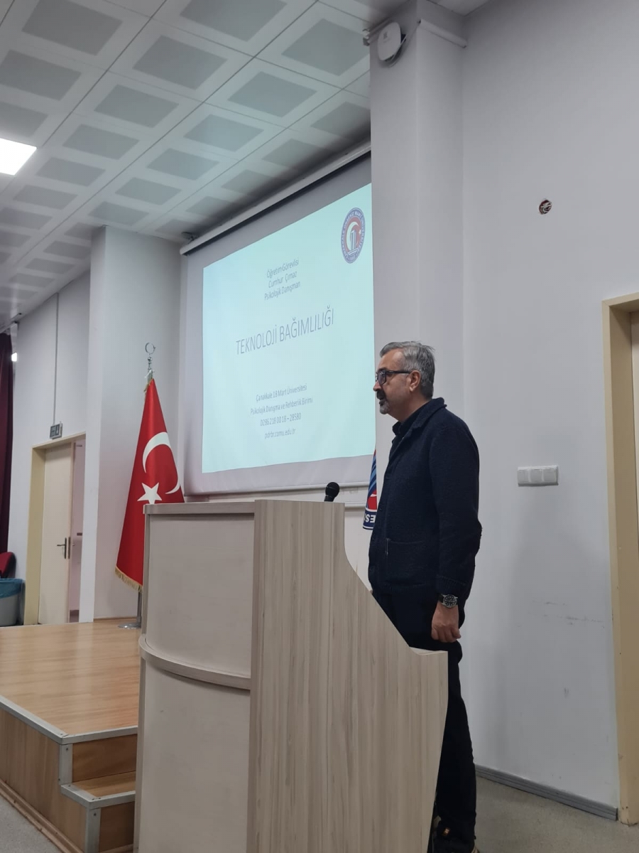 Çanakkale Onsekiz Mart Üniversitesi Bağımlılıkla Mücadele Uygulama ve Araştırma Merkezi’nin paydaşları arasında yer aldığı Gençlik ve Ruh Sağlığı Güçlendirme Paneli, Çanakkale Sağlık Hizmetleri Meslek Yüksekokulu Konferans Salonu’nda gerçekleştirildi. Panelde birimimizi temsilen Öğretim Görevlisi Cumhur Çırnaz "Teknoloji Bağımlılığı" konusunda katılım sağladı.
