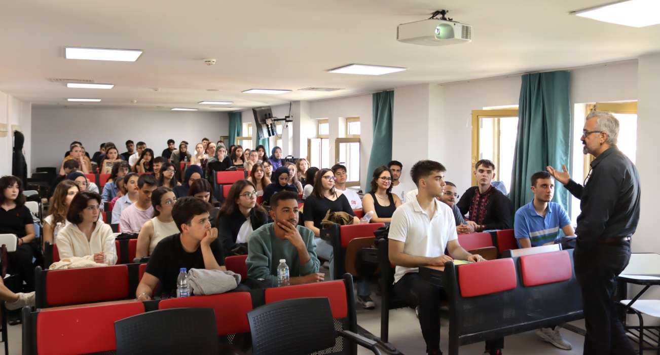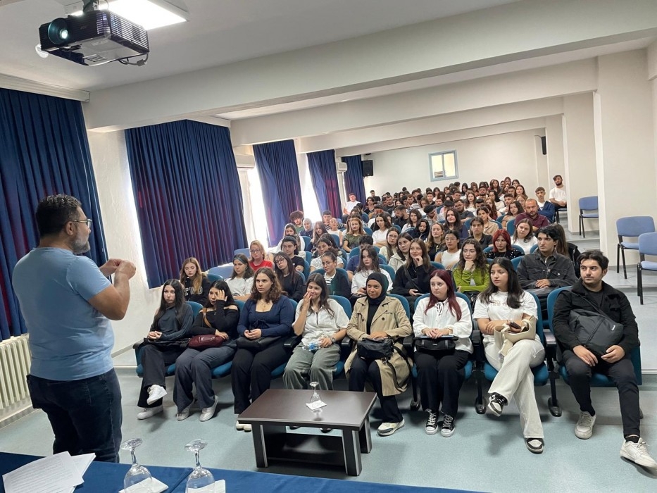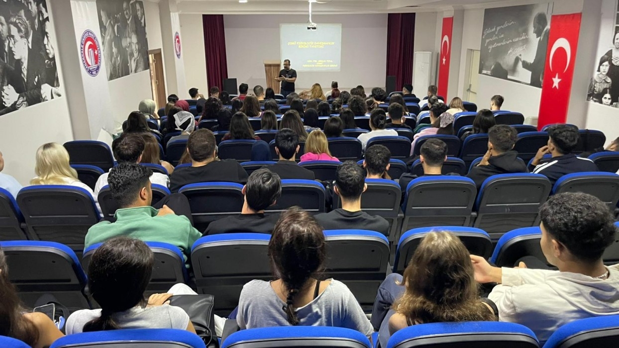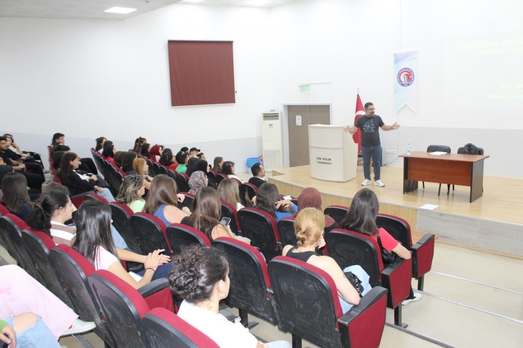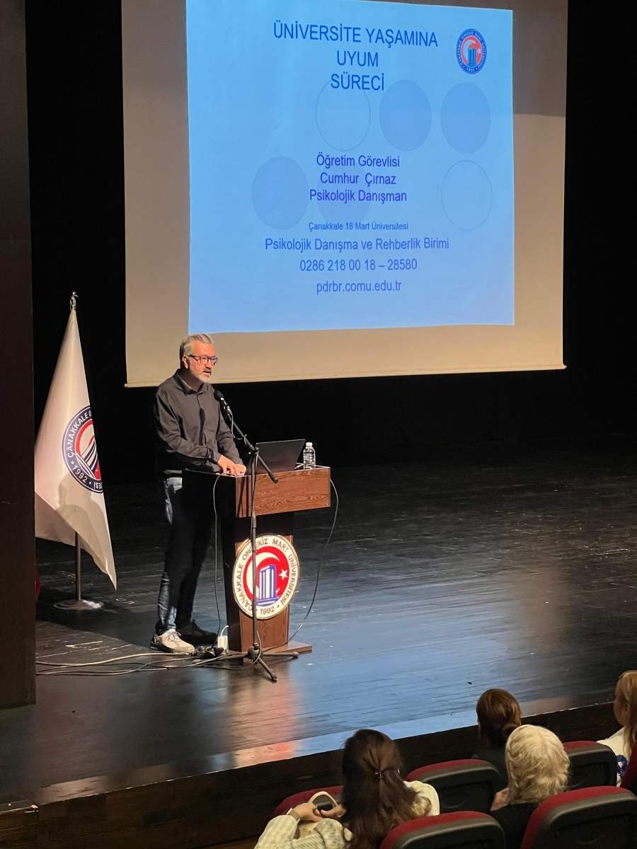 Psikolog Serdar Topal ve Psikolojik Danışman Cumhur Çırnaz tarafından üniversitemize yeni başlayan öğrencilerimize yönelik uyum süreci hakkında bilgiler verildi.Üniversite yaşamının hem daha fazla özgürlük hem de daha fazla sorumluluk olduğu, dolayısı ile kendinizi hem akademik hem kişisel hem de sosyal yönden geliştirebileceğiniz imkanları bizlere sunduğu, kendi kendine denetim becerisi, bağımsızlığa uyum sağlama becerisi gibi becerileri öğrenerek bağımsızlık – sorumluluk dengesi kurmanın öğrenilebildiği, kendimizi bu üç alanda da geliştirdiğimizde karşılaştığınız sorunların üstesinden gelmekte, problem çözmekte zorlanmanın azalacağı üzerinde duruldu. Randevu süreci hakkında öğrencilerimiz bilgilendirildi.